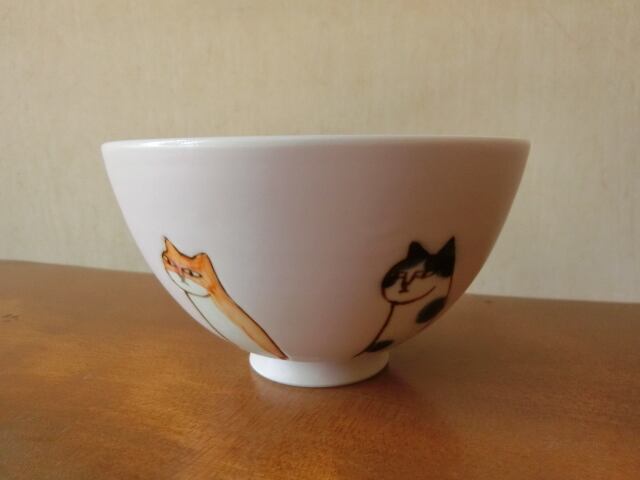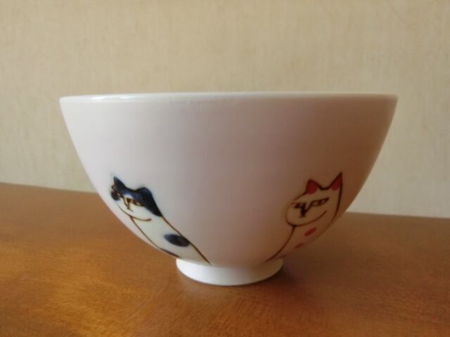 肥前吉田焼 副武製陶所 猫 飯碗 淡桃