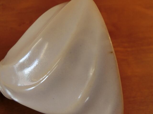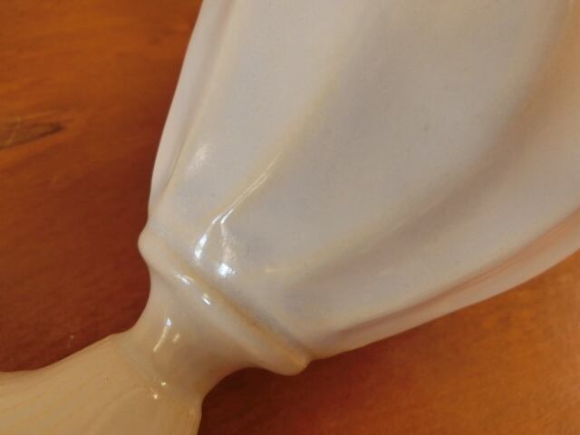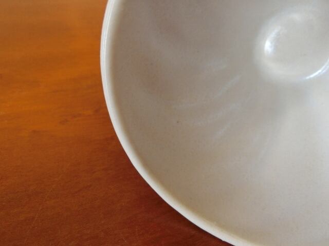 お色は白を基調とした中に、極々淡いグレーのようなブルーかかったような「月白」という釉薬が掛かっています。つや有りとつや無しの中間くらいのつや加減です。