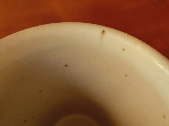 釉薬の結晶化、生地の土の鉄分が黒や褐色、青点となって浮き出た箇所等がございます。