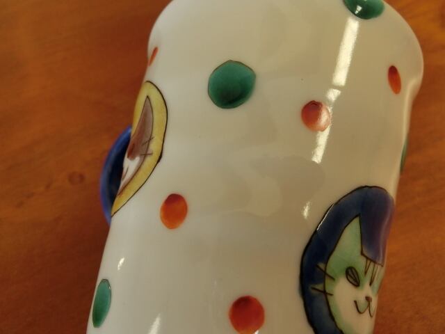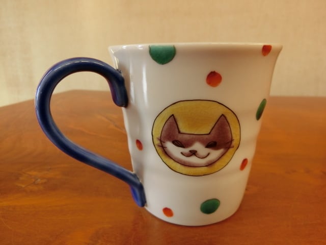 九谷焼 岡田絹代 作 ねこ マグカップ