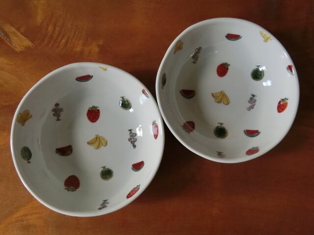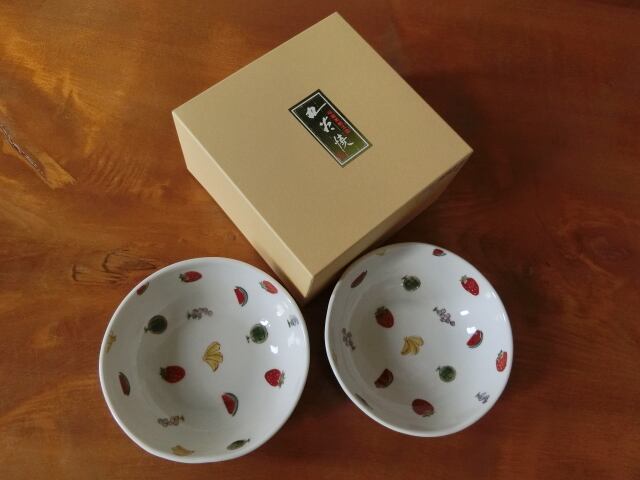 九谷焼 川合孝知 作 フルーツ模様 デザート ペアボウル