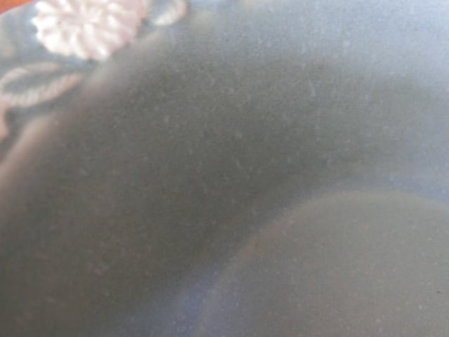釉薬の結晶化、青点、生地の土の鉄分が黒点や褐色点となって浮き出た箇所等がございます。