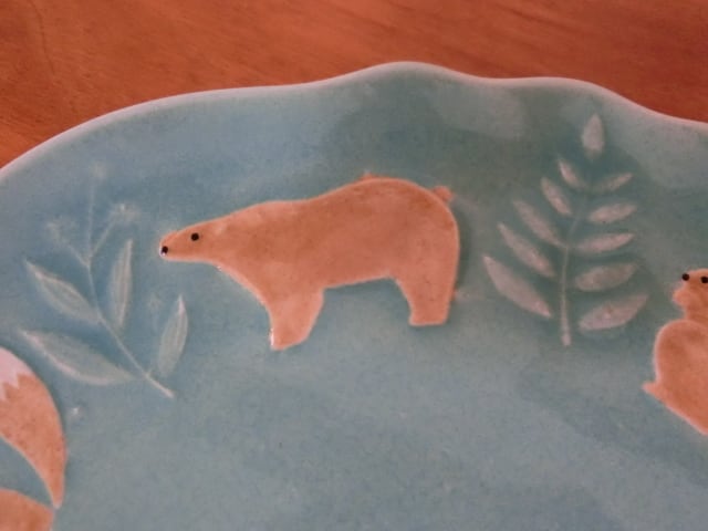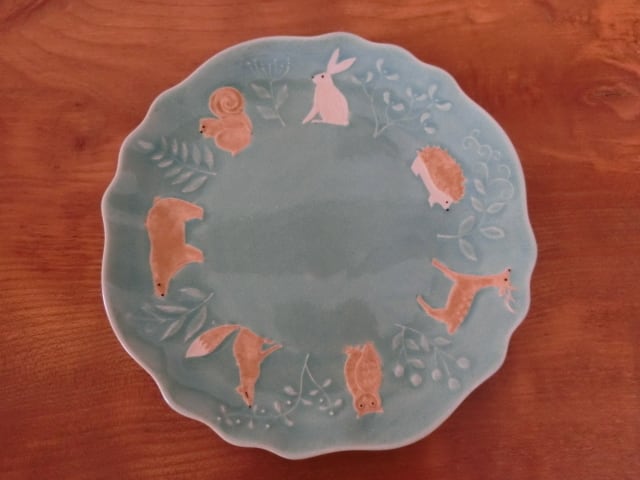 益子焼 よしざわ窯 森の動物のお皿 レイクグリーン