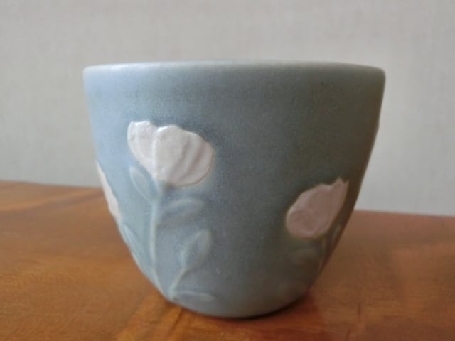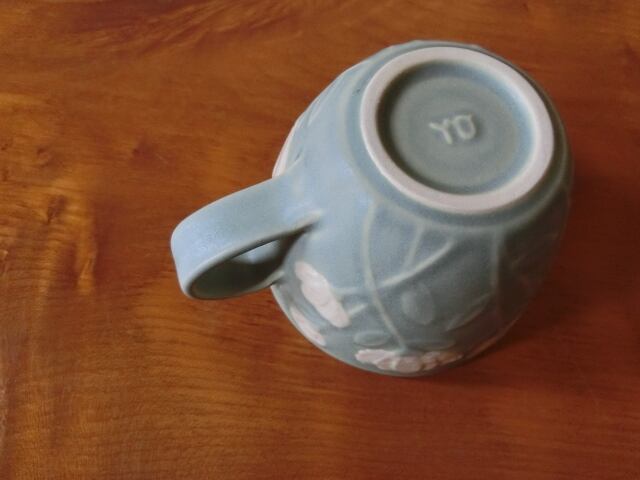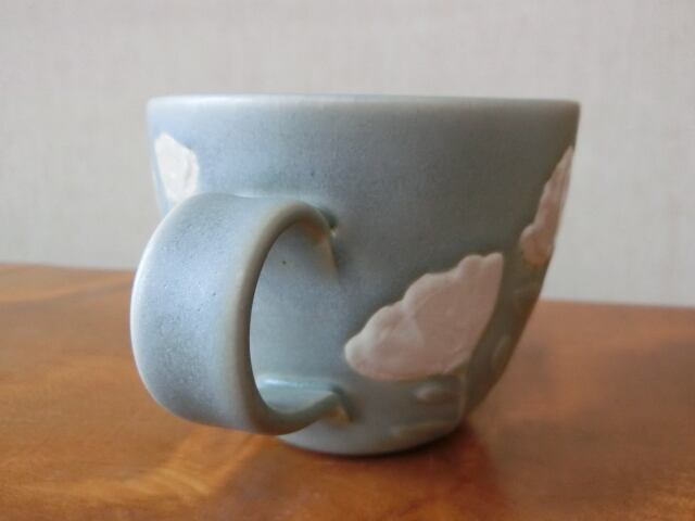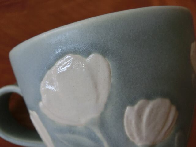 益子焼 よしざわ窯 白い花のマグカップ 薄緑