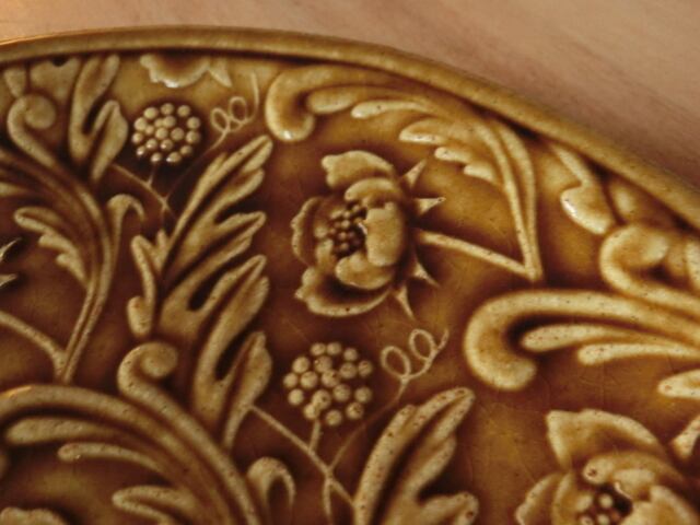 益子焼 よしざわ窯 飴色 琥珀 ボタニカルプレート 丸皿