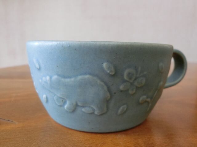 益子焼 よしざわ窯 森のくまさん マグカップ ブルーグレー