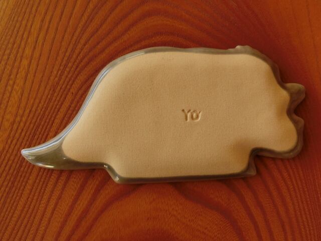 益子焼 よしざわ窯 トリケラトプス 小皿 パールストーングレー