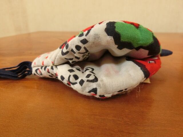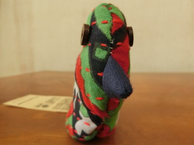 目はココナッツボタン、本体はリサイクルサリー(コットン)で作られています。