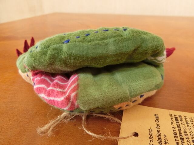 目はココナッツボタン、本体はリサイクルサリー(コットン)で作られています。