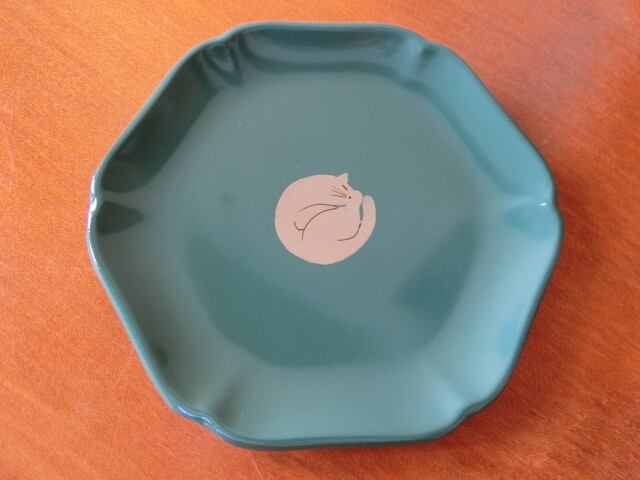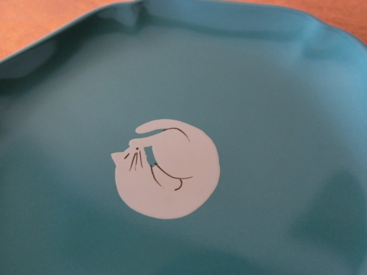 越前 猫 ねこ 蒔絵 小皿 ブルーグリーン 食洗機対応